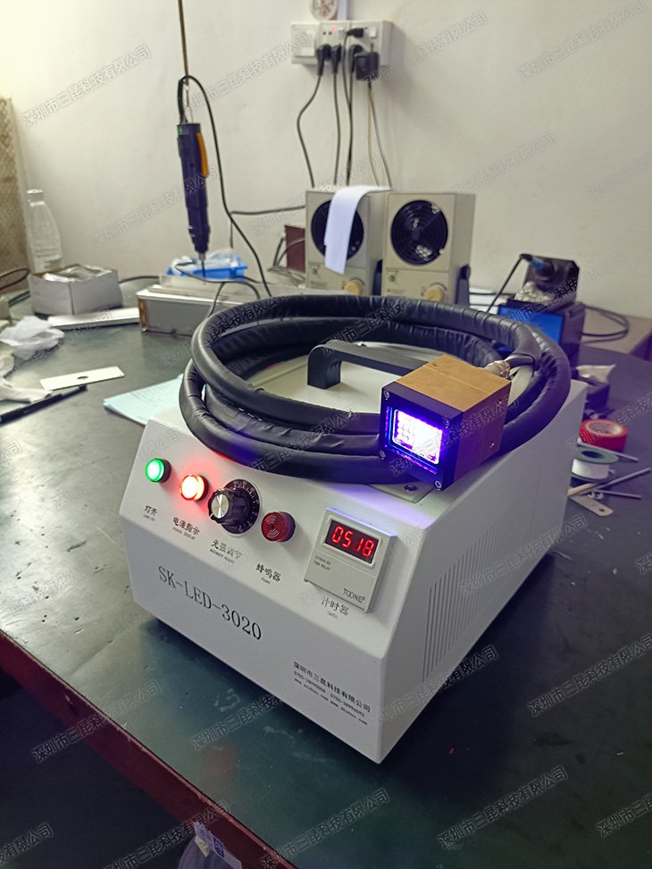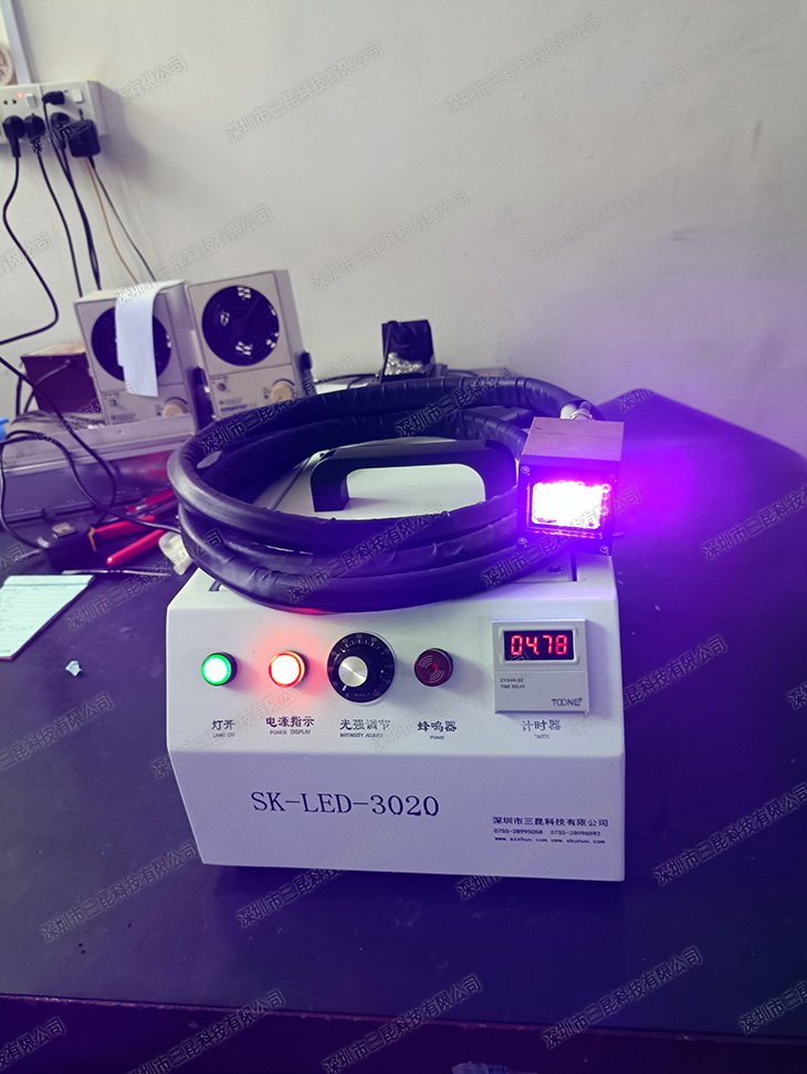 本產品采用韓國進口365nm UVLED燈珠,配備雙燈頭設計及30*20mm均勻照射面,專為線路板PCB局部油墨修補、UV膠水/油墨固化設計。特制散熱器確保低溫運行,避免熱損傷;計時器與腳踏板/按鈕雙控模式提升操作效率。220V電源適配工業場景,冷光源技術節能環保,適用于電子制造、印刷等精密固化需求,固化速度達秒級,兼顧高效與穩定性。